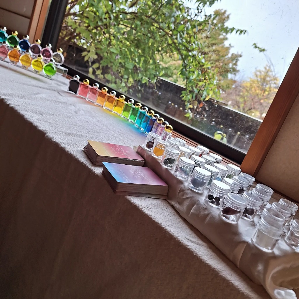 あの頃は『オーラソーマ🌈』がメインでしたが、友人とは違うメニューにしないとと、思い。。。『数秘&カラー®️🔢』をメインに変えました😅(自身のワガママになりそうで、私もオーラソーマで出店したいと、言い出せなかった😅)あれから、ずっと、『数秘術』での出店で。その後は天然石屋さんへと勤務していたことも関連し、天然石アクセサリーメンテや、マクラメ編み作成がメインに💎2018年にはオーラソーマの資格更新も叶わず。。。その少し前から『何か、カラーに関わるオリジナルセラピーをつくらないと!』と、躍起になりだし😭カラーに対する執着心なのか、本当にやりたいのかと葛藤したりの、大変な心境を過ごしました😂