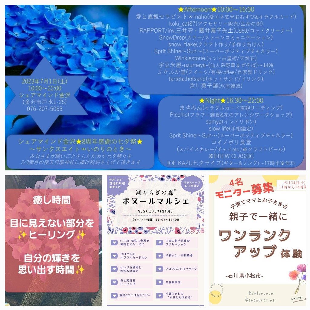 🌈虹先案内人🌈*SnowDrop**めいです🍀色んな所へ(といっても、ご近所ですが💦)出没してます☺️タイミングで、お声がけください🍀では、7月の色々を、ご案内させて頂きます✨😌✨